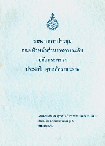 245 00 ^aรายงานการประชุมคณะหัวหน้าส่วนราชการระดับปลัดกระทรวง ประจำปี พุทธศักราช 2546 /^cกลุ่มระบบและมาตรฐานการบริหารทรัพยากรบุคคลภาครัฐ 3, สำนักวิจัยและพัฒนาระบบงานบุคคล, สำนักงาน ก.พ.